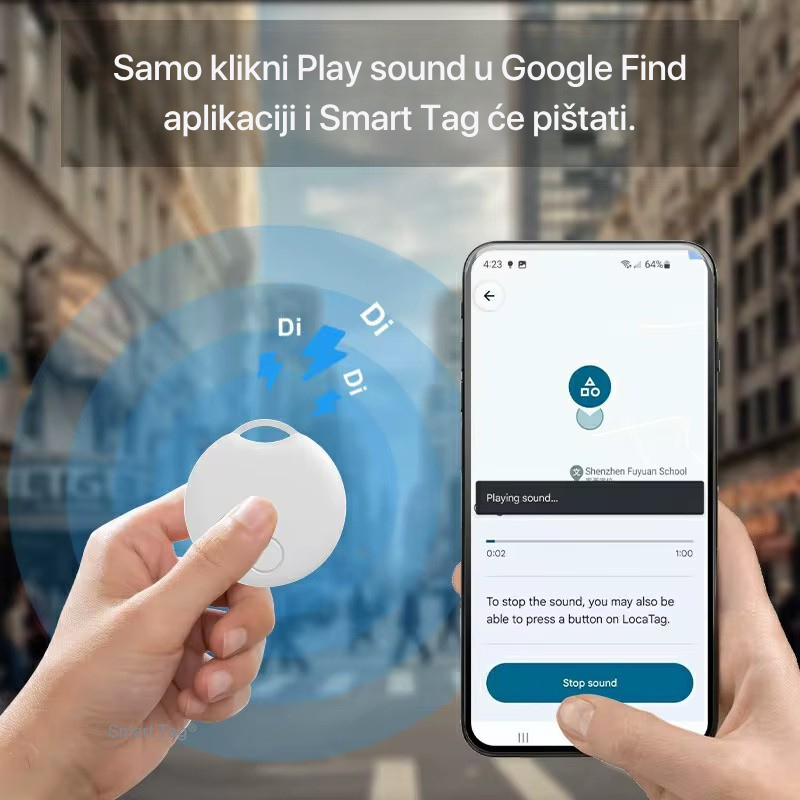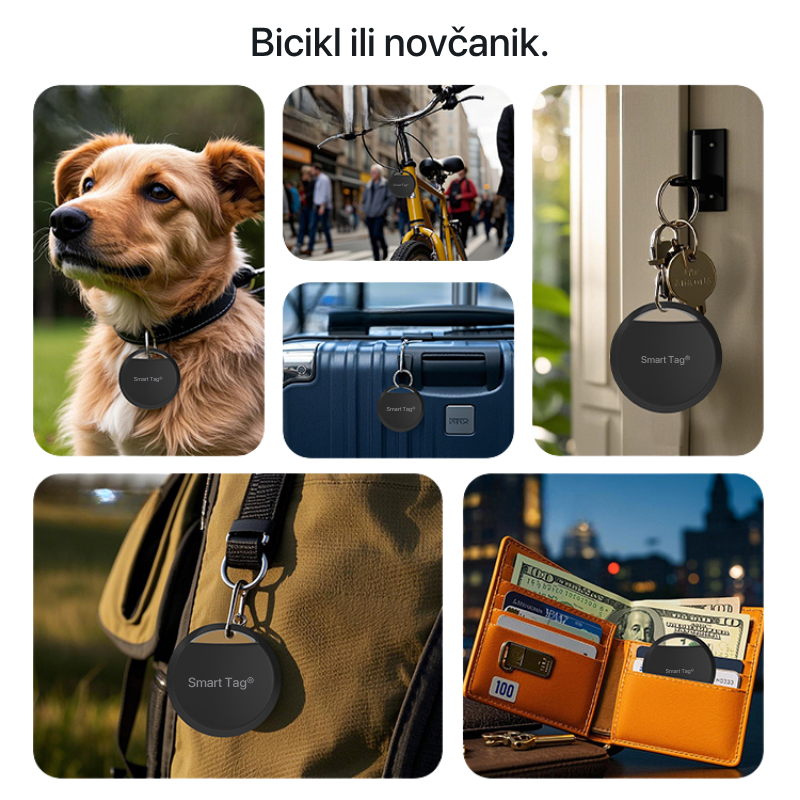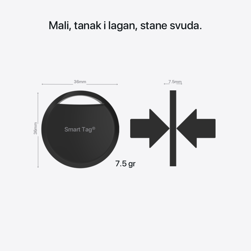 Smart Tag je mali lokator koji možeš da koristiš za ključeve, novčanik, torbu, kofer, ljubimca, auto, ili da ga ubaciš u dečiji ranac. Povezuje se preko blututa i radi svuda u svetu preko Google Find My Device mreže.