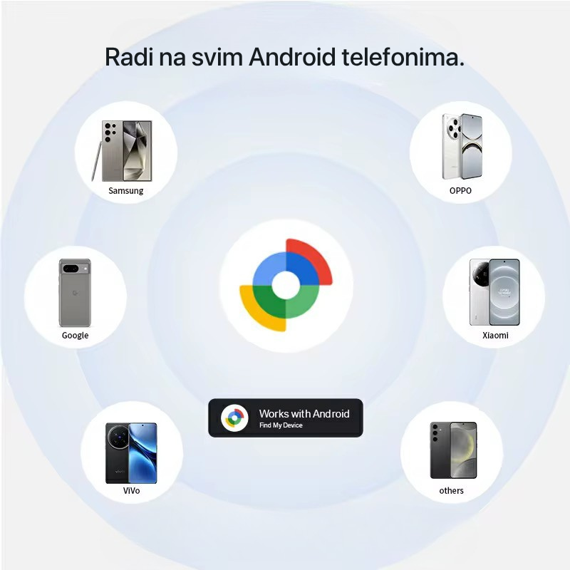 Uz pomoć ovog najprodavanijeg tracker taga možeš da pratiš lokaciju svojih najvažnijih stvari i za to ti je potreban samo tvoj bilo koji android telefon i aplikacija Google Find My Device/Centar za pronalaženje i jedan klik!